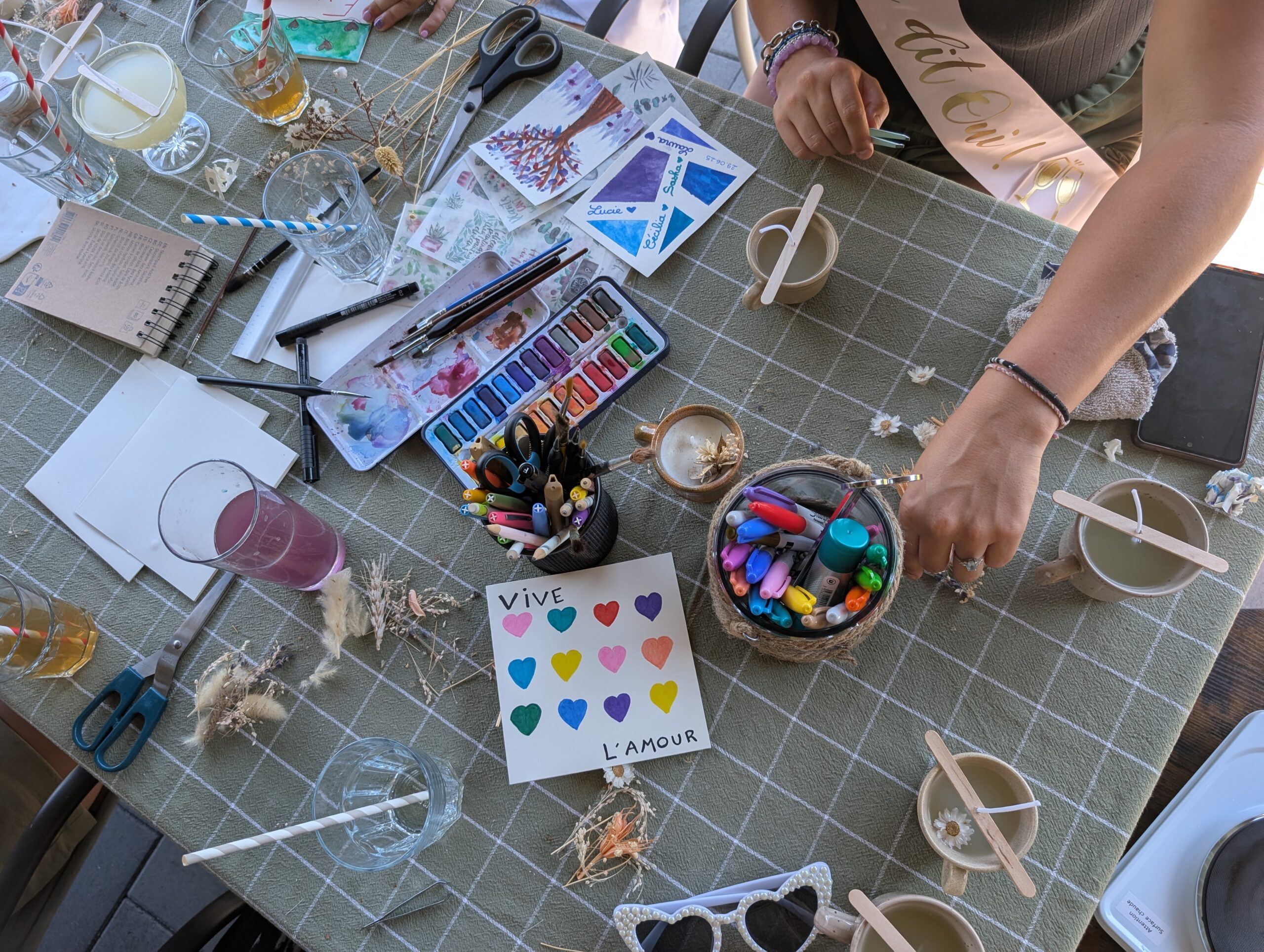 Atelier créatif et convivial de fabrication de bougies fleuries 100 % éco-responsables, pour l’EVJF de Laura en pleine nature
