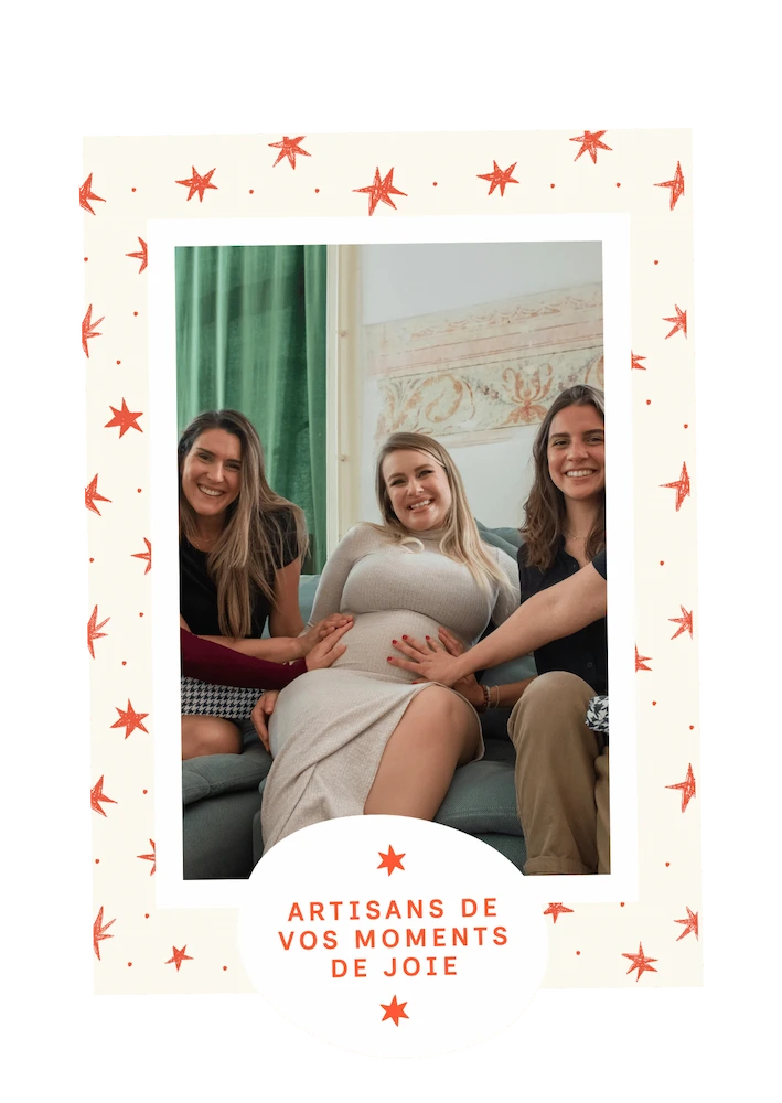 Entourée des femmes qui comptent le plus pour vous, vous serez célébrée, soutenue, rassurée et portée par la tendresse et la créativité de chacune, jusqu’au jour de votre accouchement ! L’objectif ? Que vous repartiez le cœur léger, remplie de confiance et entourée d’amour.